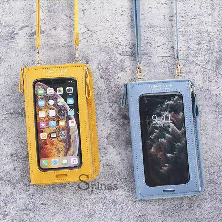 操作も充電も可能なスマホショルダー機能付きのクリアミニ財布。 ポシェット バッグ 斜めかけ 小物入れ 窓付き カード入れ 合皮