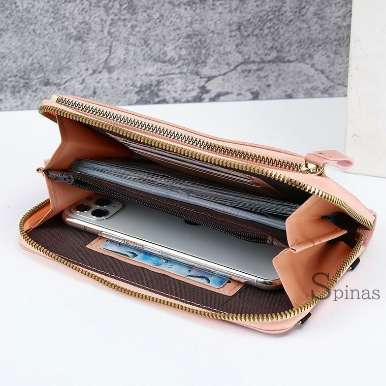 収納力もバッチリで、長財布のようにガバッと開く構造が使いやすいんです。小銭入れやカード入れも完備しているから、スマホショルダーとミニ財布がこれ一つで完結。現金派の方も安心して使えますね。